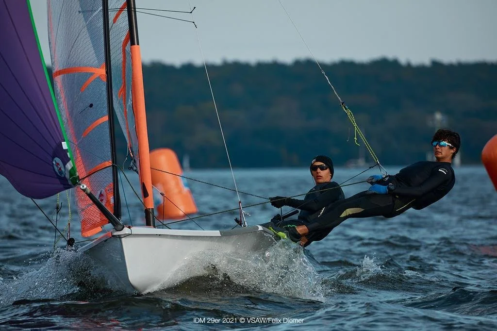 Since quite a while we had been thinking of sailing together, however both of us had another partner before. After Amal’s partner quit sailing though, it was time to finally make the move and start sailing together seriously. We were not left a lot of time to prepare and started right into the International German Youth Championship on our home waters, Wannsee. Throughout the competition we quickly noticed, that we are made for each other and could adapt to one another quickly. Therefore we were able to sail satisfactory results finishing 7th overall on day three of four, but unfortunately dropping five places due to the last race. A great success and a great experience that will not be forgotten was our first place on day two.