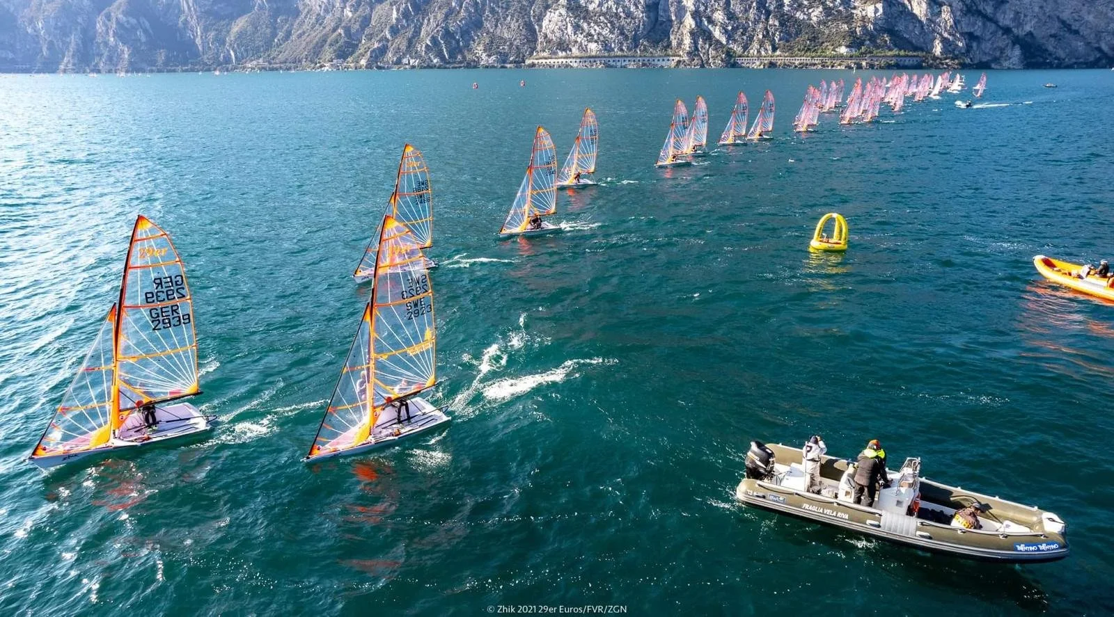 Thanks to our intensive training at Lake Garda before the competition started, we felt quite ready to deliver satisfactory results, and we did. The 200 competing teams were divided into four fleets each consisting of 50 boats. In the majority of the races we managed to sail under the top 20 but in a couple of races we even managed to sail top ten results. Obviously this was a great experience and in a race where we finished on place four, we got to know how it feels to sail at the very top. Unfortunately a second race in which we finished fourth we were disqualified do to an early start. This lead to us slightly missing the gold fleet and finishing the competition on place 74.