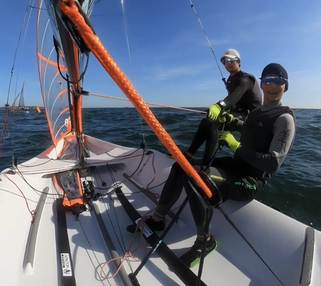 The Kiel week was beyond anything we had expected. It was the first Kiel week since the beginning of the pandemic and we got to experience it in its true scale for the first time in a while. Sailors from all over the world sailed in every class and we experienced the 29er class a lot more international than we ever had before. This was noticeable during racing and on shore, as the racing was tight and there were numerous protests. Nonetheless the first few days we managed to present ourselves quite well. Our first race of the series was not a UFD nor a BFD but a 2nd place. The weak wind towards the end of the series made us struggle in gold fleet though. The competition was very strong and we had to fight mentally and physically for every position. We finished the week as 33rd, but were unhappy about our performance in gold fleet. We are now focussed on improving these flaws before the season apex in Balís and will absorb training in Warnemünde at the beginning of summer break.